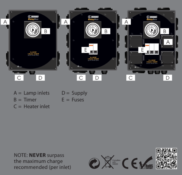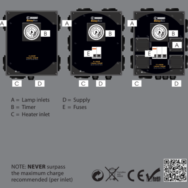 - Indgange: 8 x 600W lamper