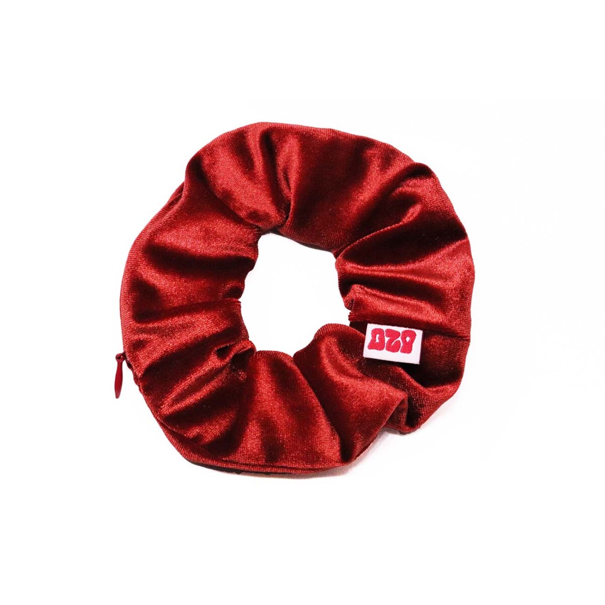 Diskret scrunchy med skjult lynlåsrum (rød) – en lille skjuledåse du kan have i håret eller på håndleddet. God til småting som mønter, nøgle eller en seddel, når du vil have skjuledåse på farten. Ser ud som en normal hårelastik, men gemmer et smart diskret opbevaring. (Farve: Rød)