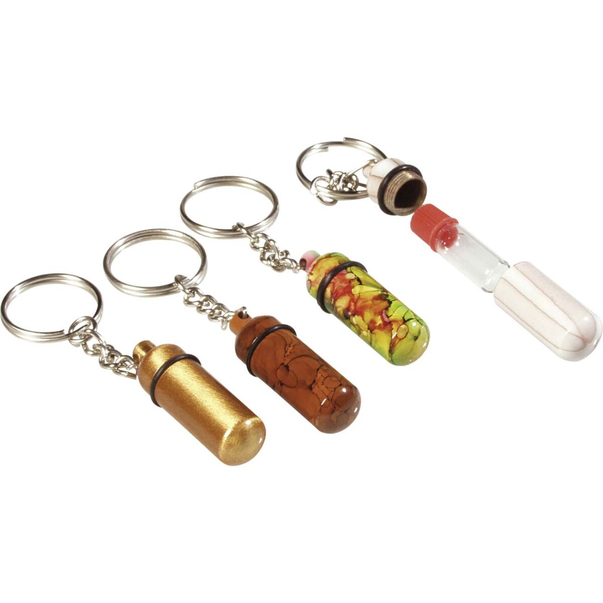 Skjulekasse – nøglering med mini-flaske (assorteret) – Subseed.dk