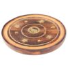 Rund røgelsesholder i mangotræ med fine messingdetaljer. Den lodrette placering giver en jævn glød, mens asken samles i bunden. Der er plads til 5 røgelsespinde + 1 røgelseskegle, så du kan skifte duft eller brænde flere på én gang. Diameter ca. 100 mm. Lad aldrig tændt røgelse være uden opsyn.