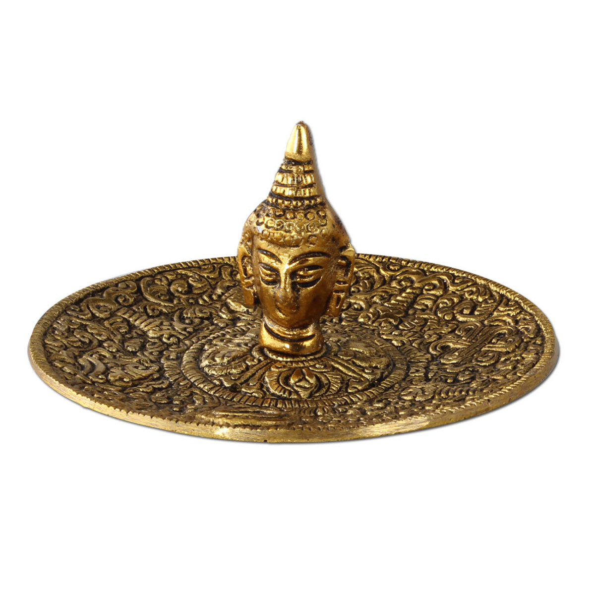Røgelsesholder i metal – Buddha-hoved – Subseed.dk