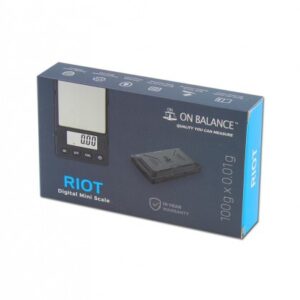 The Riot mini digital scale from ‘On Balance’ weighs precisely up to max. 100g with a measuring accuracy of 0.01g. Additional measuring units are OZ, OZT, DWT, CT and GN. Practically, the cover of the scale can be used as a weighing pan. The tare function ensures that only the weight of the contents can be weighed.